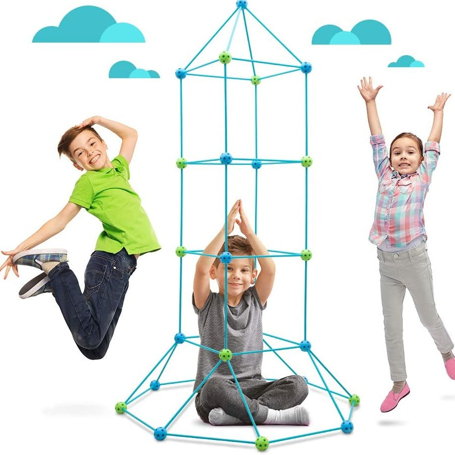 Our Fort Building Kit provides a great creative outlet for children to learn while playing. Improves hand-eye coordination and strengthens small muscles as they discover how to put the ball connectors and sticks together.